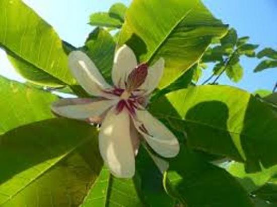 Цветение приходится на май и июнь, даже в наших широтах, сразу после появления первой листвы, довольно продолжительное время, до 4 недель. Цветки белые или молочного цвета, чашеобразные, до 18 см в диаметре и имеют прекрасный ванильно - лимонный аромат.