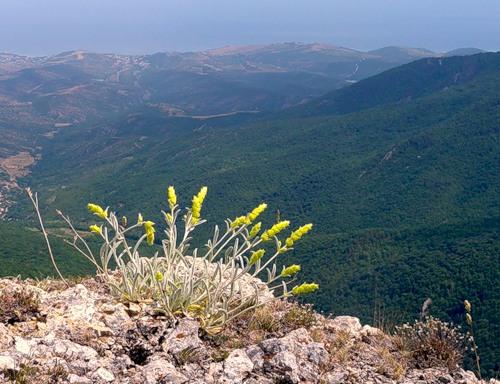Лимонник крымский – многолетнее, полувечнозеленое и солнцелюбивое растение. Листья железницы – беловойлочные, имеют приятный лимонный запах и используются в качестве заменителя чая. Стебло лимонника вырастает до 70 см в высоту. Желтые и очень маленькие цветы собраны в небольшой пучок, прикрыты зеленовато – желтыми листьями и сохраняют свой цвет до самой зимы. Растение морозостойкое и не требует дополнительного утепления на зиму.